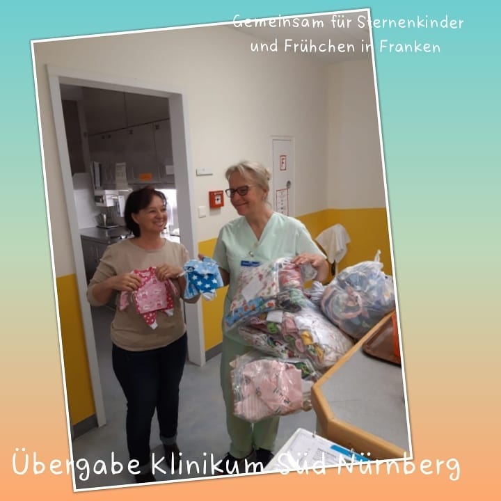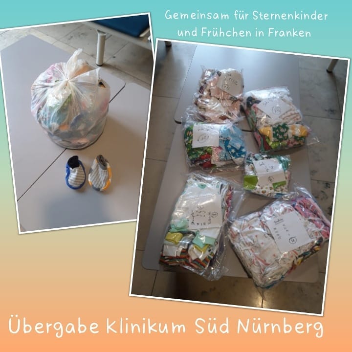 Ende Februar war Roswitha wieder im Klinikum Nürnberg Süd zu einer Übergabe. Es war wie die Bescherung zu Weihnachten für die Station 😁 die Freude war sehr groß und das freut uns natürlich ebenso. Auf dem zweiten Bild sind wieder Ambubeutel zu sehen, diese 13 Stück hat Roswitha gezaubert. Auf dem dritten Bild ist eine große Tüte voll mit Tippy Toes von Kerstin und die genähten und nach Größen sortierten Sets und Bodies ab Größe 30/35 bis 50 für die Frühchen zu sehen.