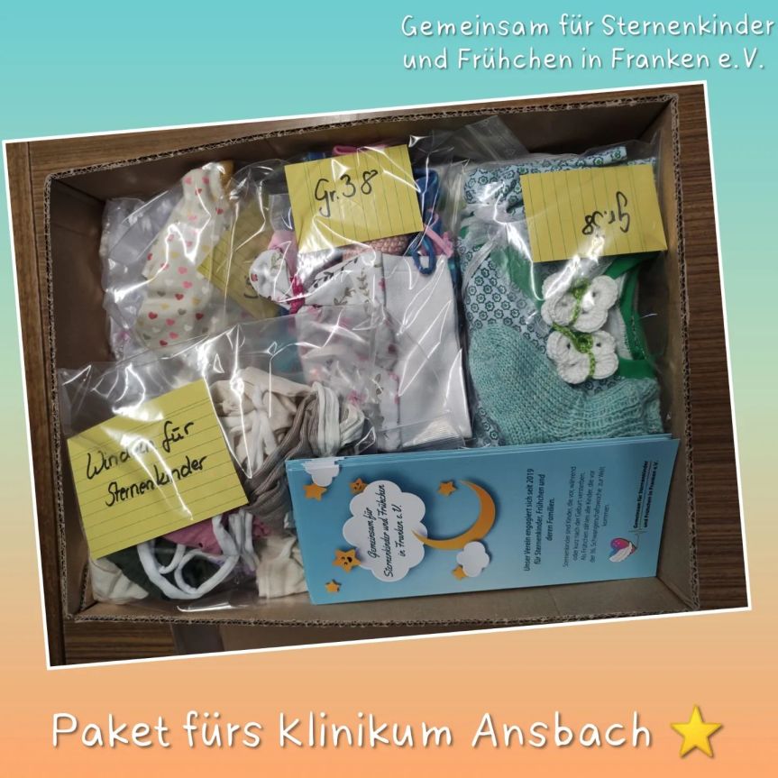 Dieses Paket mit Kleidung ab Größe 38 für Sternenkinder hat sich auf den Weg gemacht ins Klinikum Ansbach. ![]()