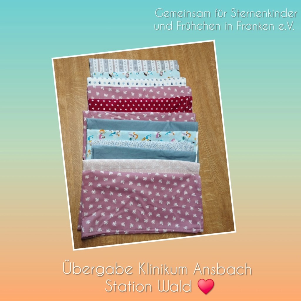 Im Februar hatten wir eine herzliche Übergabe im Klinikum Ansbach. Vor ein paar Tagen kam eine explizite Nachfrage nach bunten Laken für die Bettchen. Tanja hat nicht lange gefackelt und einen ersten Schwung genäht.
