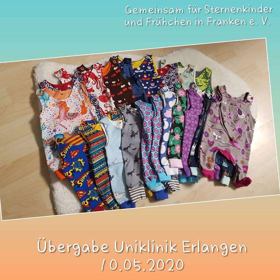 Hallo Ihr Lieben! Die Cnopf’sche Kinderklinik Nürnberg hat in Ansbach ebenfalls eine Station. Dort sind die etwas fitteren Frühchen. Und auf der Station Wald bei Schwester Simone war unsere Tanja am 27.08.2020 zur Übergabe. Sie hatte Decken (waren gewünscht), Strampler, Hosen, Bodies, Tippy Toes, Handschuhe und Mützchen im Gepäck. Die Übergabe war mehr als herzlich und man hat die Dankbarkeit sehr gespürt. Wir freuen uns riesig, wenn wir helfen können. Und genau die Momente machen es doch aus, warum man das Ehrenamt ausführt.